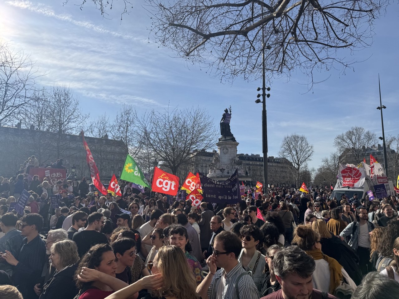 Place de la République, au croisement de quatre arrondissements et au cœur de tous les combats, se tenait le 8 mars la grève féministe, rassemblant 120 000 personnes.