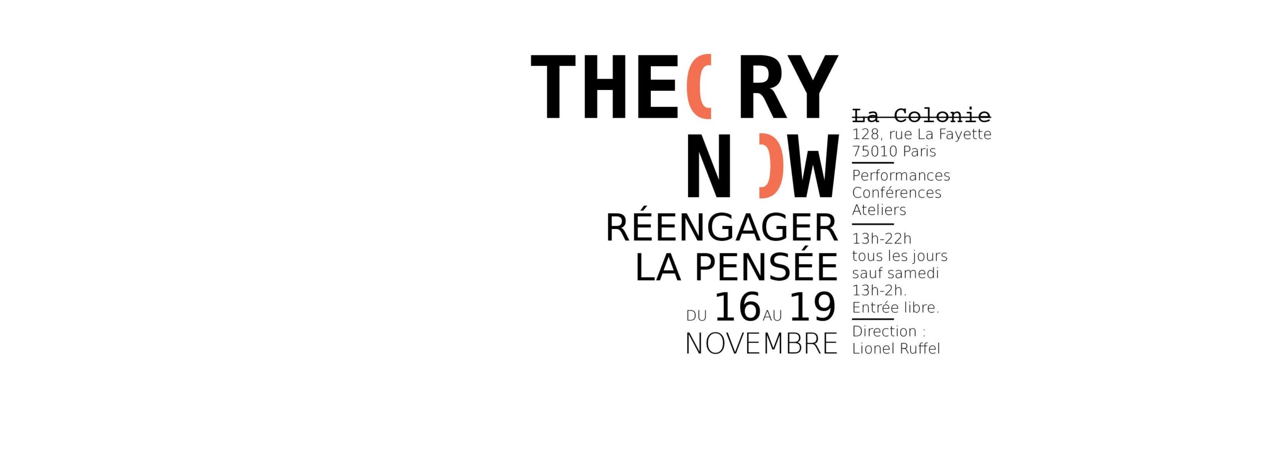Theory Now est un projet du « Leverhulme International Network in Contemporary Studies » (Lincs, dir. M-A. Hutton) et de La colonie. Il reçoit le soutien du Lincs, de l’Institut Universitaire de France, de l’EA « Littérature, histoires, esthétique » (Univ. Paris 8) et de l’Université Paris Lumières.