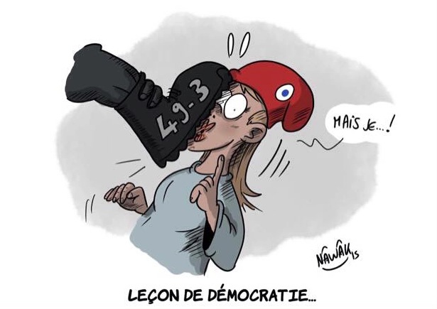 « Mais c’est une brutalité qui montre une grande faiblesse, une grande fébrilité d’un gouvernement qui n’a pas le soutien de l’opinion pour cette loi, qui n’a pas de majorité à l’Assemblée Nationale pour la porter et qui se recroqueville sur une arme constitutionnelle pour passer en force. »