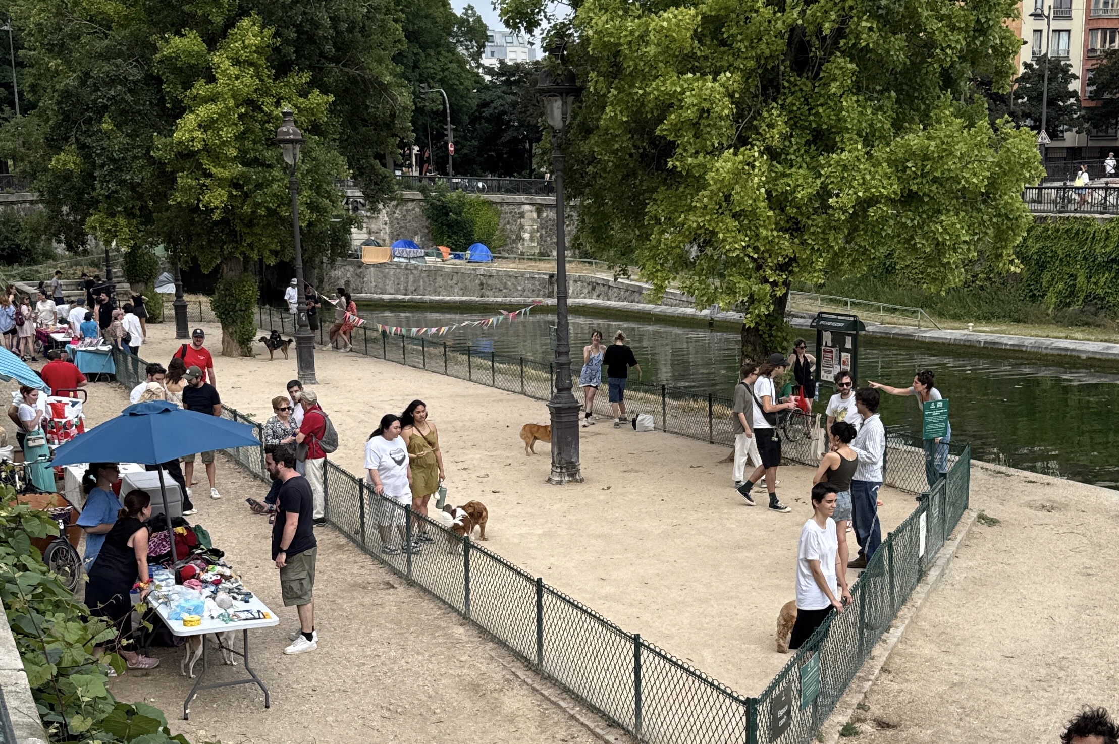 Quelle mouche m’a piqué, d’aller à la fête des chiens, moi qui n’ai jamais eu pour compagnie que celle d’un chat ? Certes, je me devais d’être présent à la première édition de la Fête des Chiens du Canal, organisée au square des Maures par l’association Les Chiens du Canal ; après tout, c’est mon rôle d’encourager les dynamiques associatives de la circonscription. Et ce fut un plaisir de partager ce moment chaleureux qui montre combien ce lieu compte pour les habitants du quartier … et pour leurs chiens, évidemment ! Mais la raison implicite de ma présence est en réalité aussi philosophique qu’empirique : parce qu’au bien-être animal que permettent ces rencontres canines, s’ajoute aussi et surtout a possibilité de liens entre habitant.es, réunis autour de leur passion commune : un endroit, aussi rare que précieux où toutes les classes sociales se côtoient, un lieu, surtout, qui permet de sceller des amitiés et … de dessiner des couples ; autrement dit, défendre un tel espace c’est défendre les histoires d’amour qu’il rend possibles.