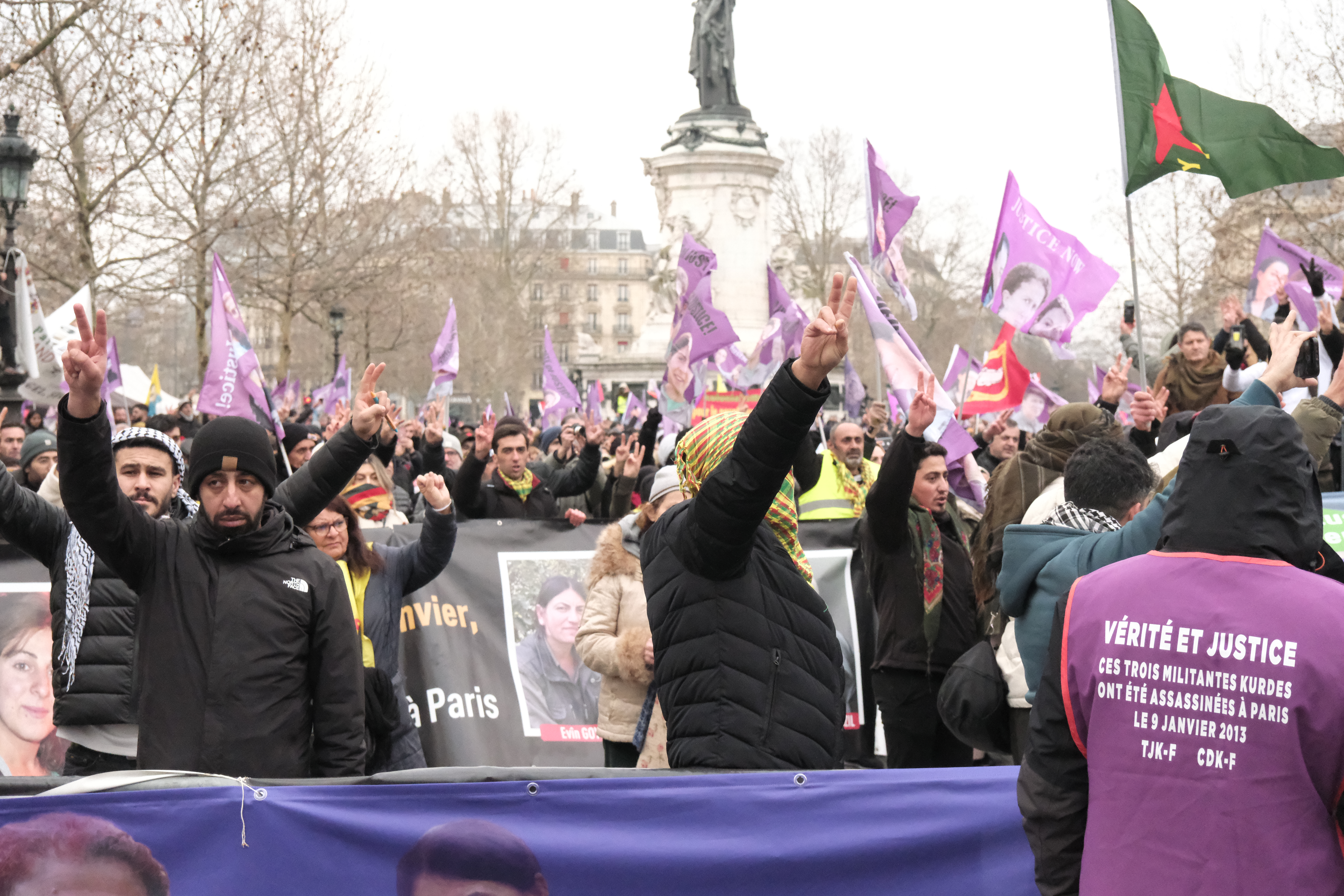Être à cette manifestation, ce n’est pas seulement commémorer les esprits libres et engagés assassinés, c’est aussi rendre un hommage aux combattantes et combattants kurdes, pour la démocratie, l’état de droit et la liberté. Le combat des kurdes, en Turquie, en Syrie, en Iran, en Irak, ne porte pas seulement leurs revendications, il porte pour toutes et tous, avec exemplarité, des principes d’émancipation et de fraternité, avec courage. Le courage, par les armes, contre Daesh, puisque les soldates et soldats kurdes étaient en première ligne. Le courage aussi et surtout, de porter un idéal de société qui réside dans l’égalité. Ce message, nous devons le porter collectivement.