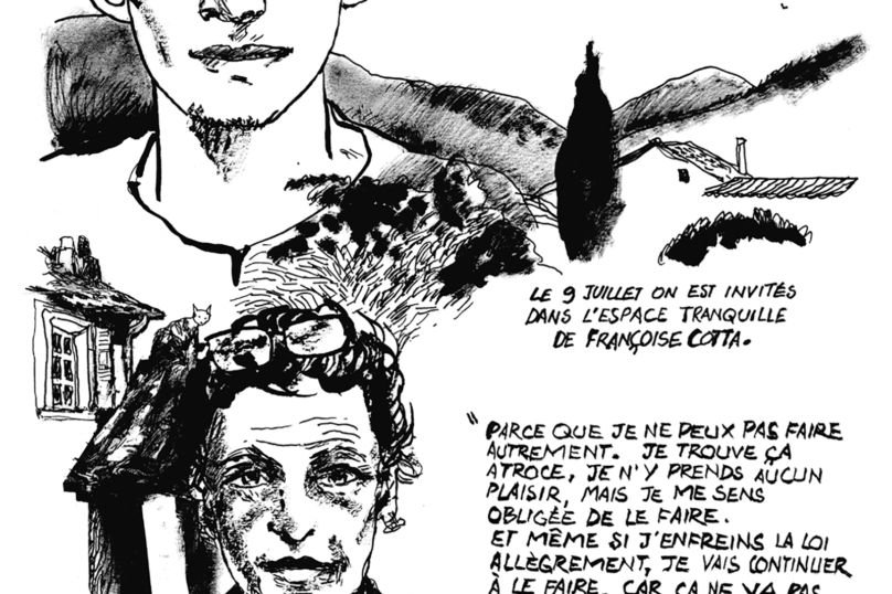 Ils étaient à Vintimille puis dans la Roya, près des migrants, avec les nouveaux Justes (lire Politis n° 1489). Ils racontent l’humilité des arrivants, la bonté des aidants. Le trait noir et épais d’Edmond Baudoin s’entremêle pour la troisième fois avec le crayon fin de Troubs. Déjà, les deux auteurs avaient réalisé deux reportages (1) sur les déplacés de Colombie et les candidats mexicains au « rêve américain ». Troubs, qui se définit comme un dessinateur-voyageur, est un habitué des carnets de route. Baudoin, lui, est un voyageur de l’âme, dont il sait tracer les contours sensuels, les tourments et les plaisirs. À 76 ans, ce maître de la BD n’abdique rien, ni de son art ni de son humanisme profond. Un engagement qui n’a pas besoin de slogans pour exister. Le trait courbé suffit.
