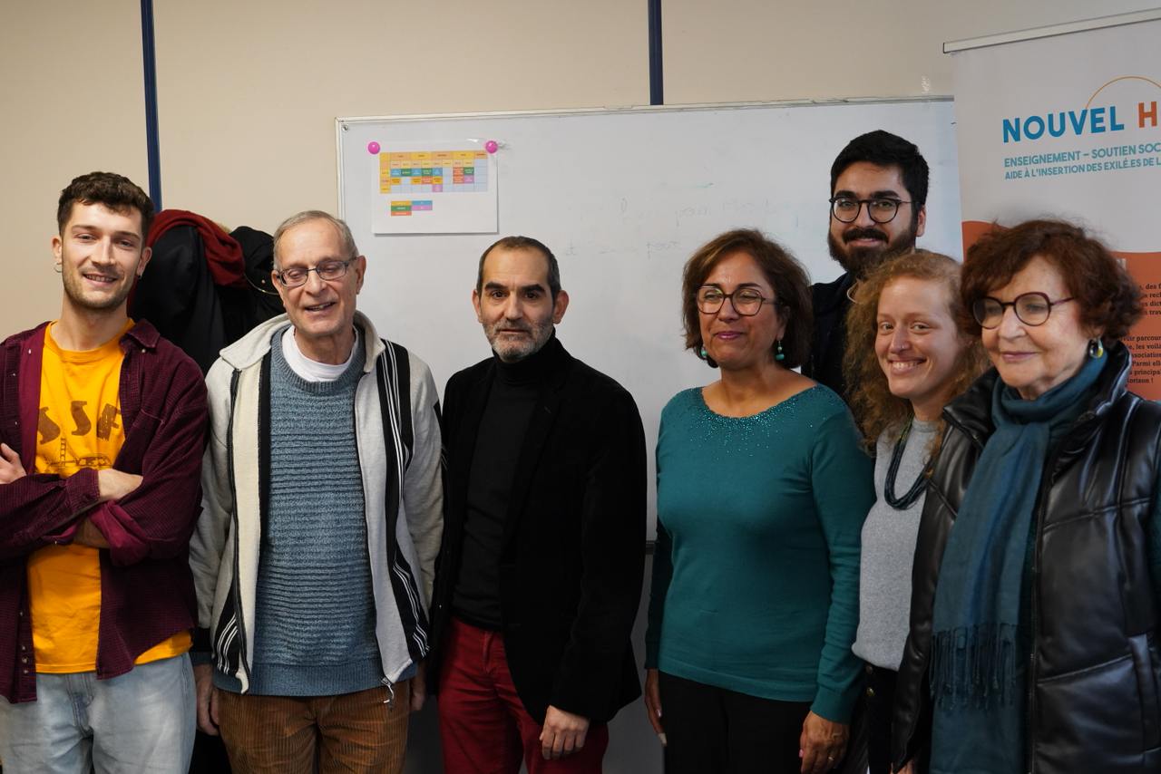 Mandana, Patrick, Léa, Ronan, Ferielle, Chamseddine, Armin. Dans les locaux de Nouvel Horizon à Saint-Denis, nous rencontrons les professeurs et chefs de pôle de l’association. Nous découvrons aussi les visages des élèves, Afghans et Iraniens, des femmes et des hommes qui sont arrivés pour certains il y a six mois, pour d’autres il y a cinq ans. Toutes et tous suivent assidûment le cours dispensé par Ferielle à quelques jours des fêtes de fin d’année et des bonnes résolutions.